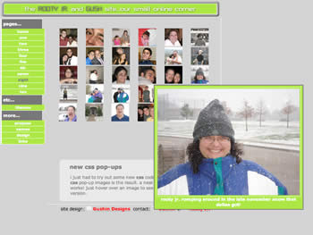 solution: this site has been sorta my testing ground for new techniques i learn from time to time. there are flash galleries, css hover galleries and acronym hovers. it was the first site i tried to design that was totally tableless. to date it has over 1100 images. i have also put my illustrator "fun" sketches on the site that i like to create.